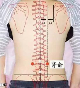 同上坐姿,兩手叉腰,拇指向前按於同側肋端,中指按於腎俞穴,適當用力按揉30-50次。